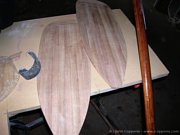The original plywood paddle blade shows a suspicious darkening. Here,